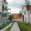 Der Freiraumbezug für alle Wohnungen war ein wichtiger Leitgedanke der Planung. Ein verbindender grüner Weg mit Sitzstufen führt zwischen der Reihenhäusern und dem Geschossbau. Dieser interne Kommunikationsraum wird vor allem von Kindern gut angenommen.